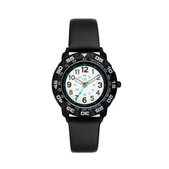 "Fußball-Fans aufgepasst! Ob groß oder klein, diese sportlich-coole Kinderuhr mit schwarz-beschichtetem Gehäuse und drehbarem Topring der Marke Cool Time lässt die Herzen aller Fußball-Fans höher schlagen. Neben dem Design wurde bei der Entwicklung auch auf die Qualität besonders viel Wert gelegt. So ist die Kinderuhr mit Sillikonarmband schadstoffgeprüft, widerstandsfähig, abwaschbar und sehr komfortabel zu tragen. Dank klarer Zahlen und präzisen Minuteneinteilungen wird das Erlernen der Uhrzeit zum Kinderspiel. Ein zuverlässiges Quarzwerk und kratzunempfindliches Mineralglas runden die Kinderuhr optimal ab. Verpackt im coolen Mäppchen mit Eulen-Motiv ist die Uhr ein ideales Geschenk und sorgt auch in der Schule für ""Cool Time"".